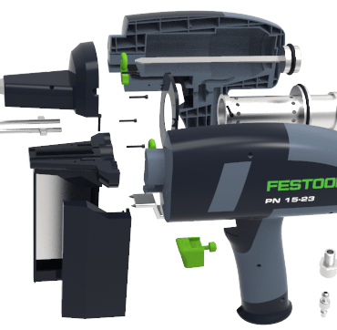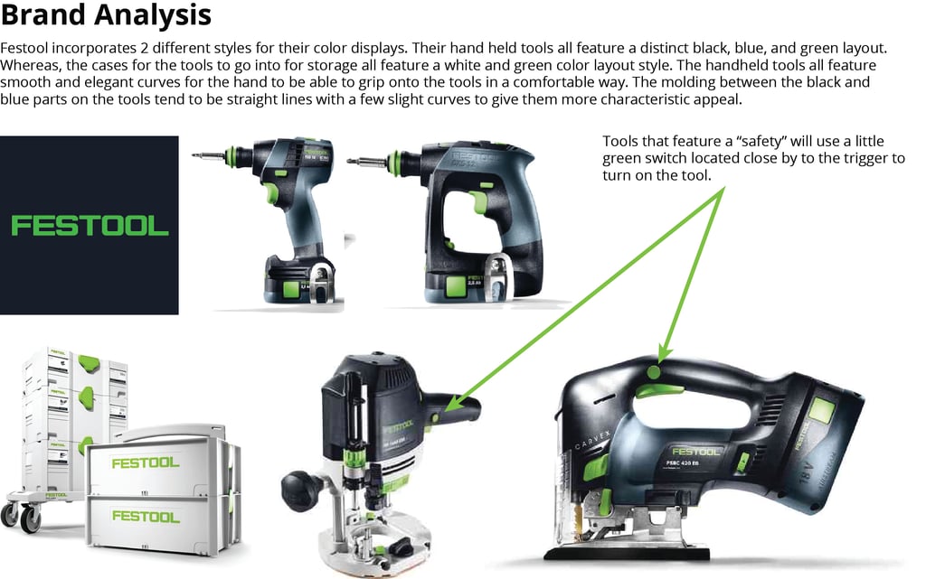 I decided to use the Festool brand because they hadn't made any versions of nail guns within their tool catalog. I felt that this could lend into my design intent as the new product wouldn't be competing with any preexisting products.