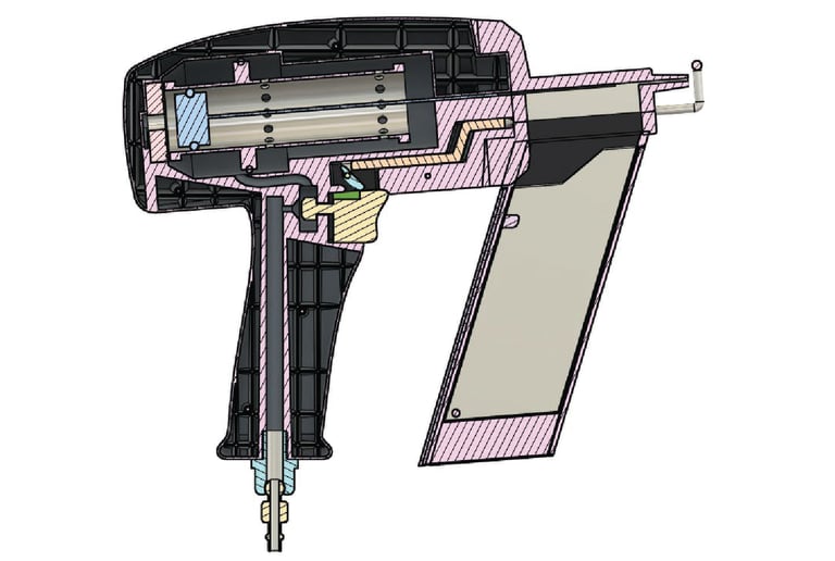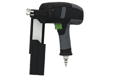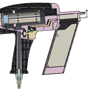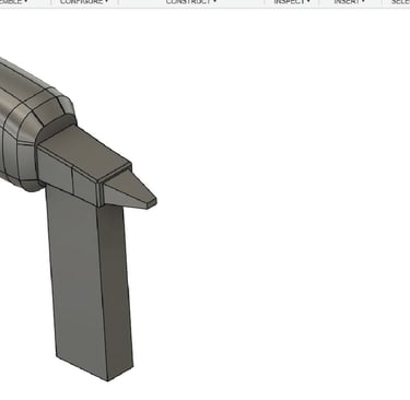 After completing the CNC model of the power tool, I continued to design the rest of the tool in Fusion 360. I pulled outside sources for the breakdown and design of pneumatic nail guns so that I could design the inside of the tool to be as accurate as possible. I also took this time to finally create the main mechanism in which the user can freely remove and then attach a different nail clip gauge to the front of the tool.