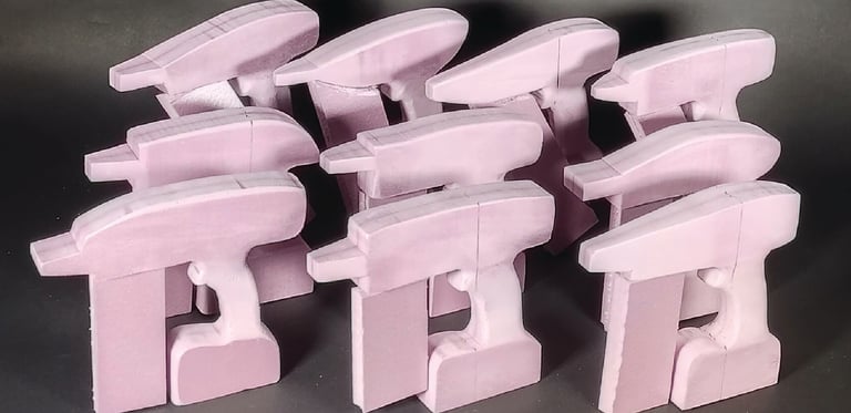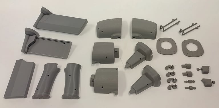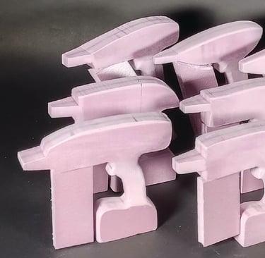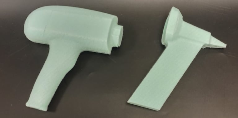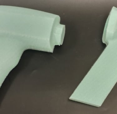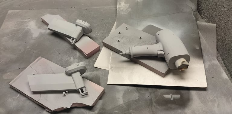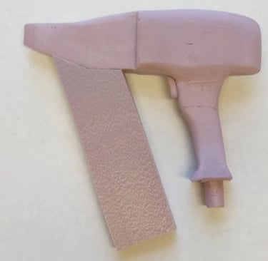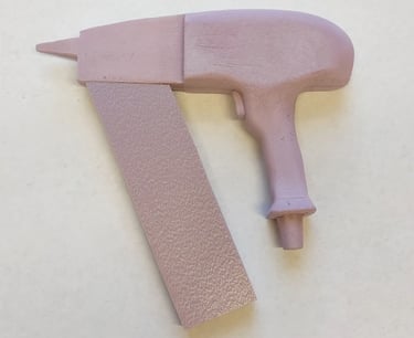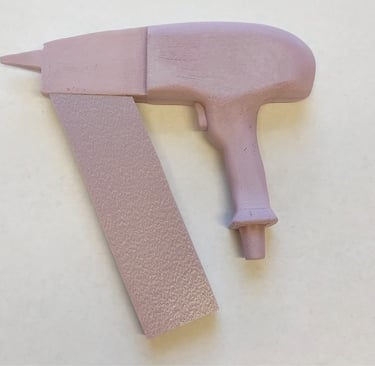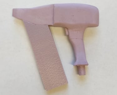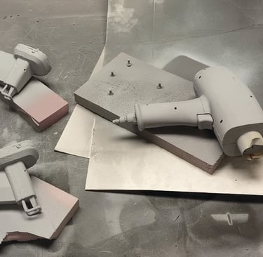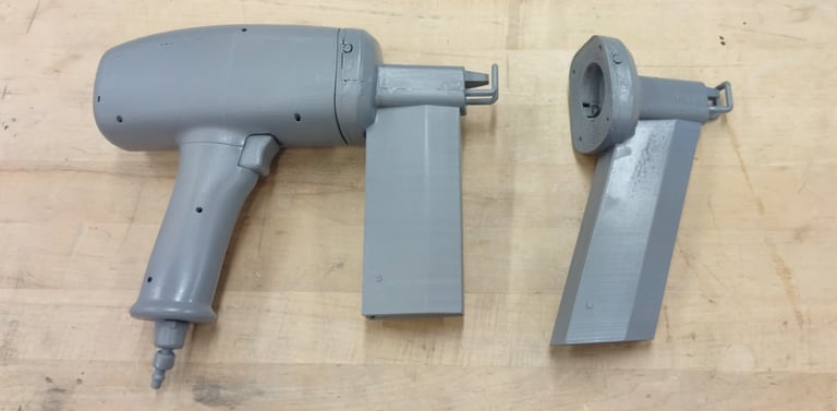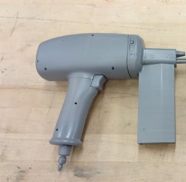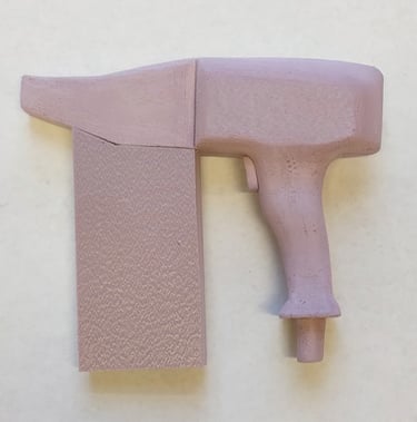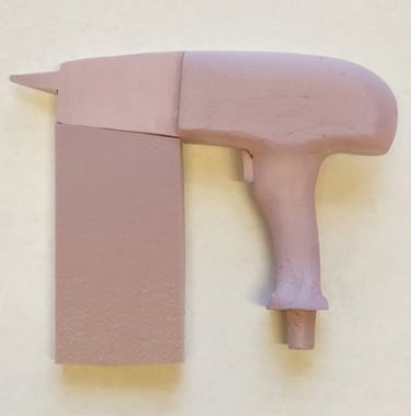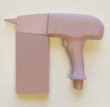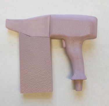 After finalizing the CAD model for the nail gun, I moved onto 3D printing the final form. I glued each piece of the main tool body together as well as two of the interchangeable nail clip gauge attachments. I then Spray painted and primed all of the pieces in order to finish the final physical version of the nail gun power tool.