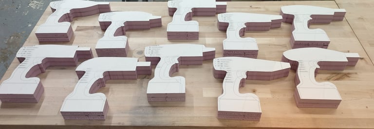 After narowing down of the different ideation forms, I created another set of foam models in a much more refined and perfected state. From these new sets of foam models I also looked into doing handle design form studies. This research ideation would then later be used when creating my power tool in Fusion 360.