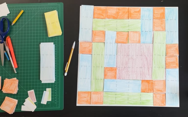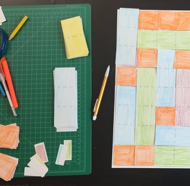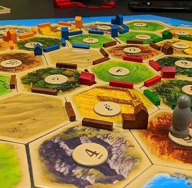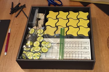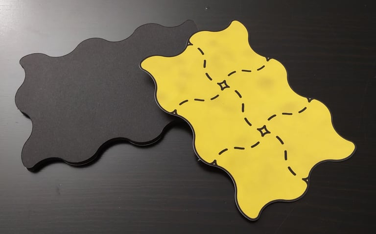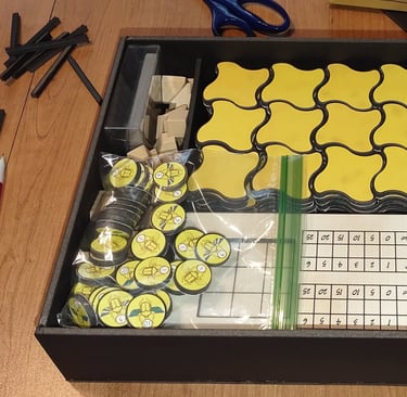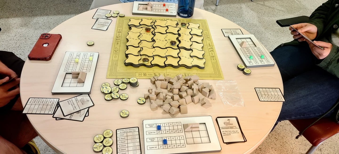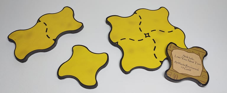 The best way to troubleshoot a new board game is to conduct playtests. I started out with simple pieces made from cardstock and then quickly moved onto 3D printed parts as well. Later on, the cardstock was replaced with foam board as it both provided more rigidity to the pieces, but also provided more dimensionality to the game board overall.