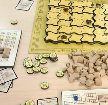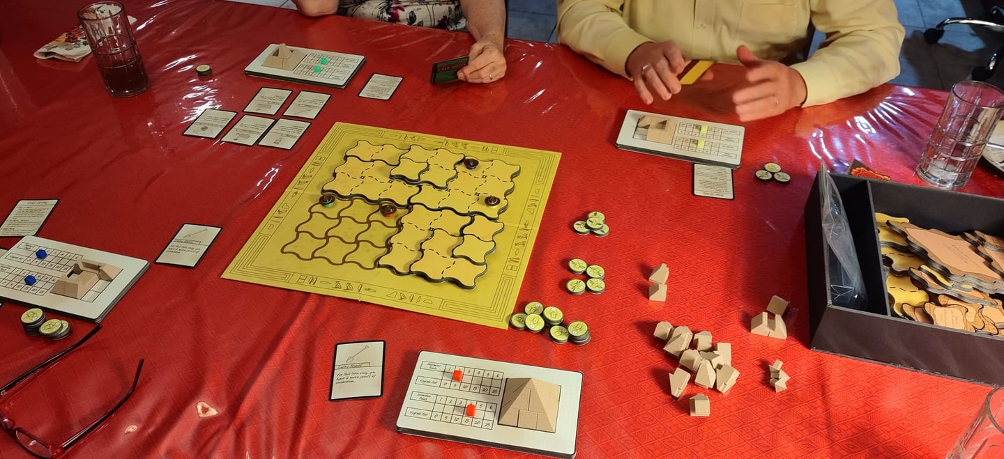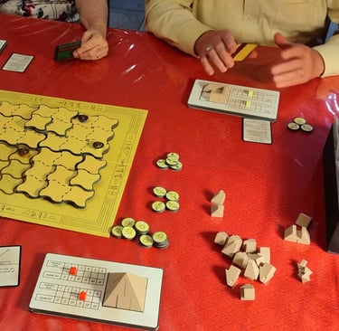 With different games comes different styles of play. People tend to buy and play games in which they like, and or, are interested in the featured mechanics of the game. Pyramid Quest features game mechanics such as hand management, map reduction, action drafting, grid movement, income, modular board, and strategy.