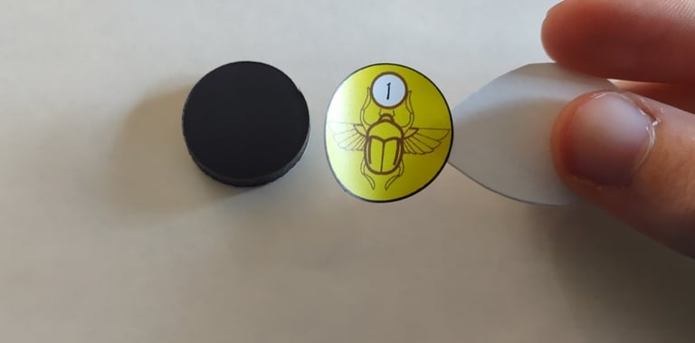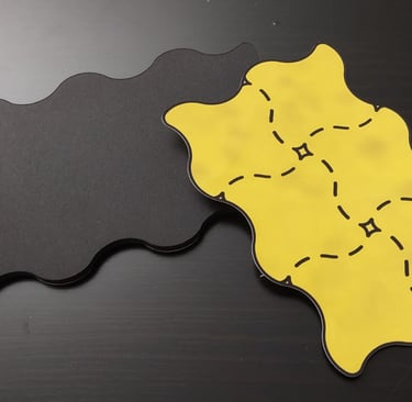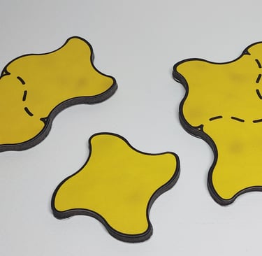 The Final pieces to finish off the game were the collectible gold coins and the differently sized sand tiles. These parts were both cut to shape by a Kongsberg cutting table. After the pieces were cut, I manually placed the vinyl stickering onto each part.