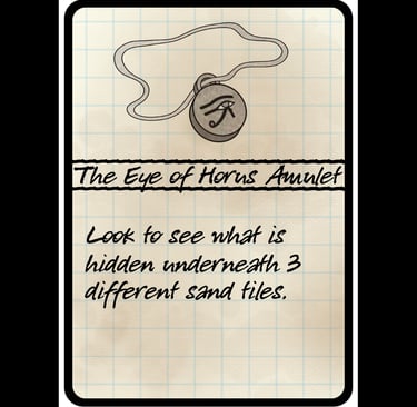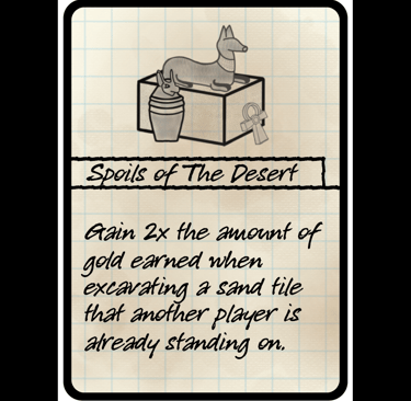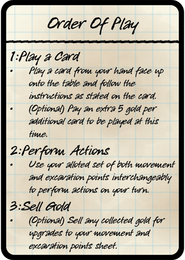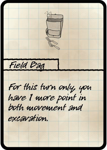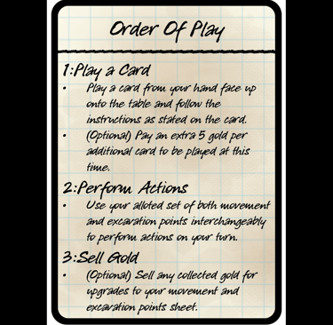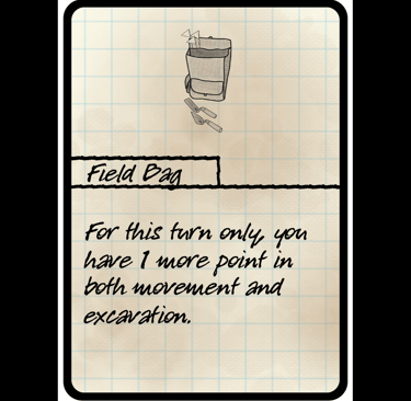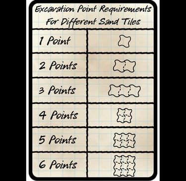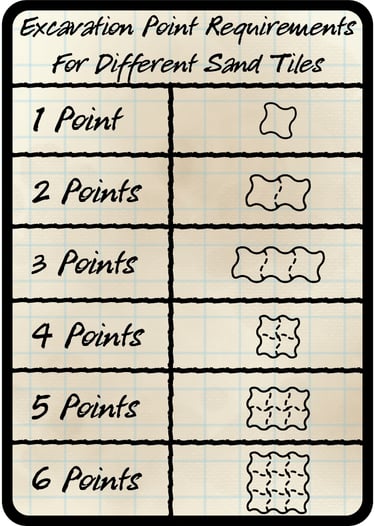In Pyramid Quest, each player is given their very own deck of Field Note cards. These cards will allow different abilities to be conducted at the start of each turn. An additional Reference card is also provided for each player. This card includes the steps of your turn while also being a guide to the excavation point requirements for certain sand tiles.