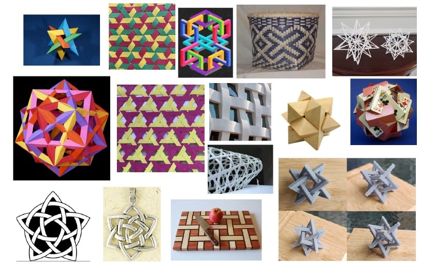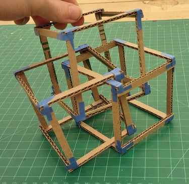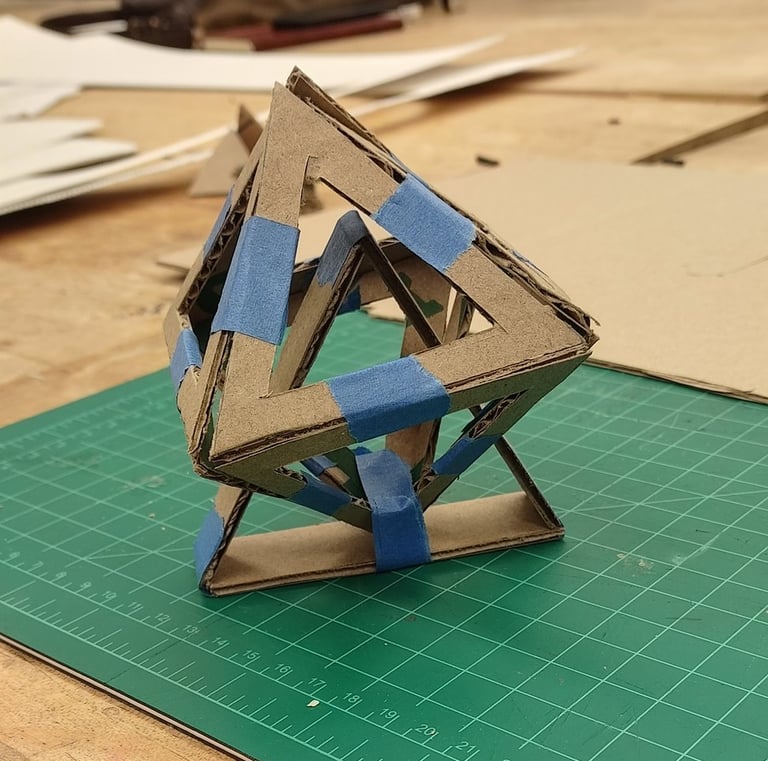 First forms created from the sketch designs were made from cardboard strips which were woven into one another in order to create the geometric patters.