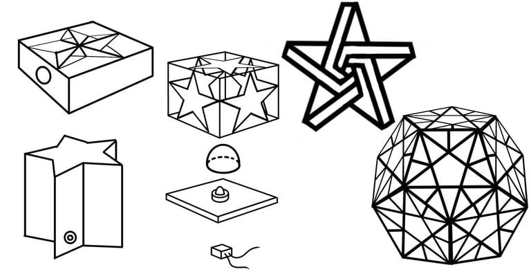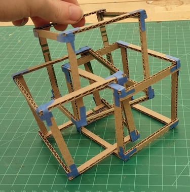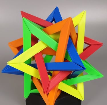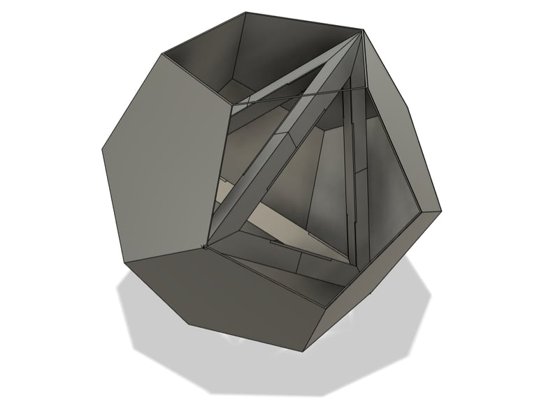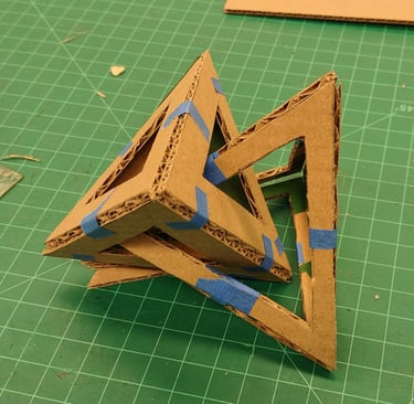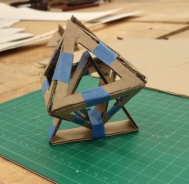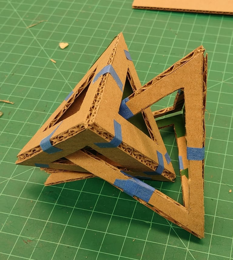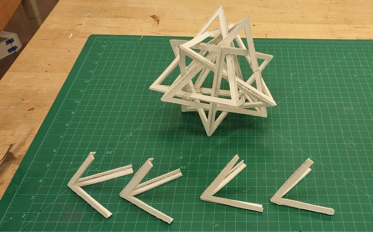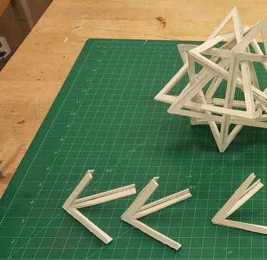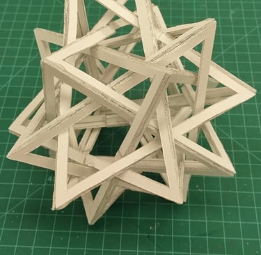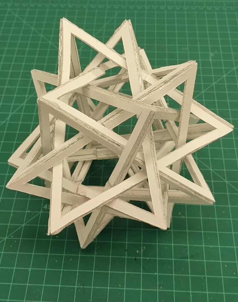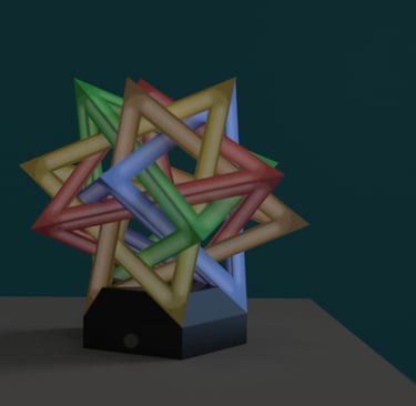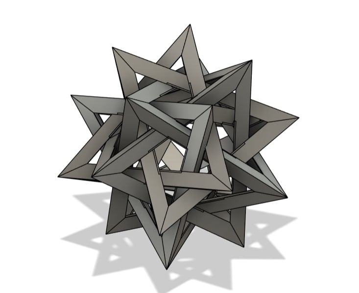 Through further research into the designs from the low fidelity models, I came across the goemetric shape of 5 intersected tetrohedrons. Basing the design off of the form image, I created a final low fidelity model.