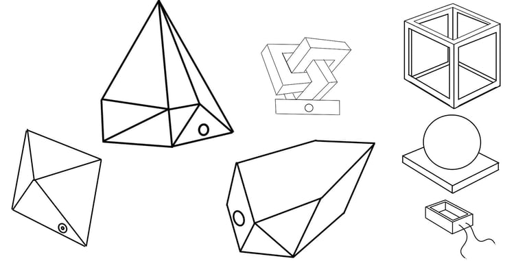 Inspiration for the lamp stemmed from forms of interweaving components and parts. The designs made out of origami were the most intriguing and any design ideations going forward that could represent these combined geometric shapes were preferred.