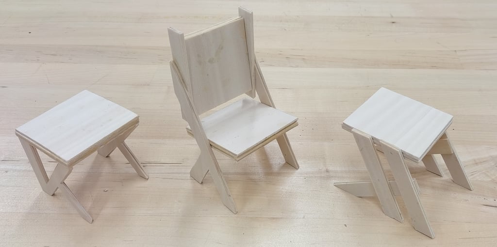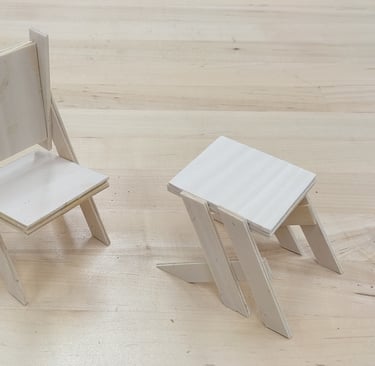 From the ideation sketches, 3 of the best forms were chosen to be created in rough 3D models. These models were each created at a 1/8th scale to an actual piece of household furniture.