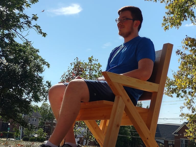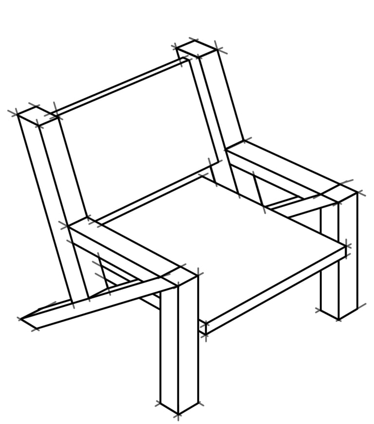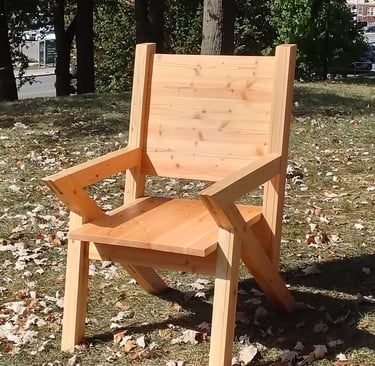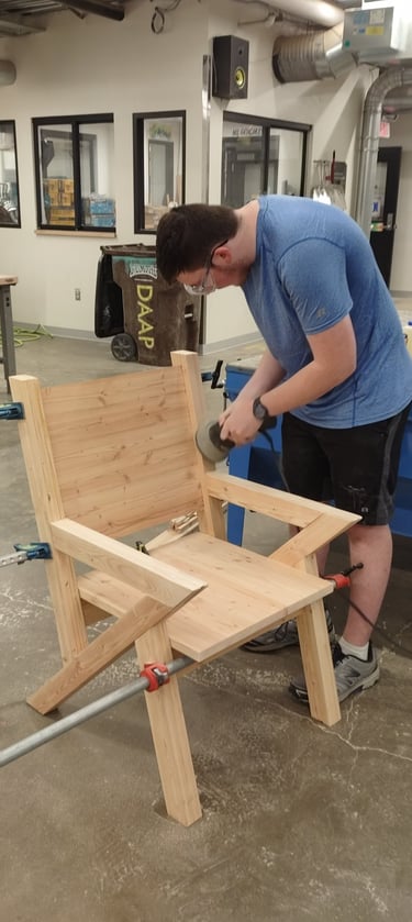The design intent for the chair was to pull inspiration from modern furniture designs while also incorporating simple sharp angles, all of which are formed together while using simple wood joinery techniques.
